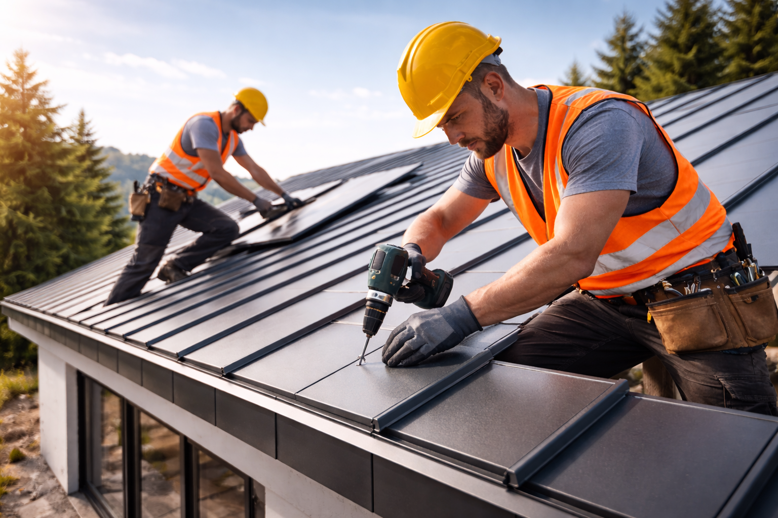 Unsere Dachprofis montieren die Dachkonstruktion nach aktuellen Normen, installieren eine leistungsfähige Wärmedämmung und sorgen für eine dauerhaft dichte Gebäudehülle – inklusive aller Anschlüsse, Entwässerung und Durchdringungen. Regelmäßige Qualitätskontrollen, saubere Baustellenorganisation und konsequente Arbeitssicherheit sind für uns selbstverständlich. So entsteht ein modernes, langlebiges Dach, das Energie spart, Ihre Immobilie aufwertet und architektonische Akzente setzt.